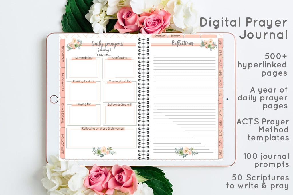 - A digital prayer journal complete with 500+ hyperlinked pages AND a printable version of the journal.
