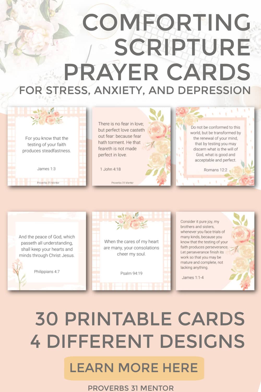 These Scripture prayer cards provide a comforting reminder of God’s promises to help you stand firm in stress, anxiety, and depression.