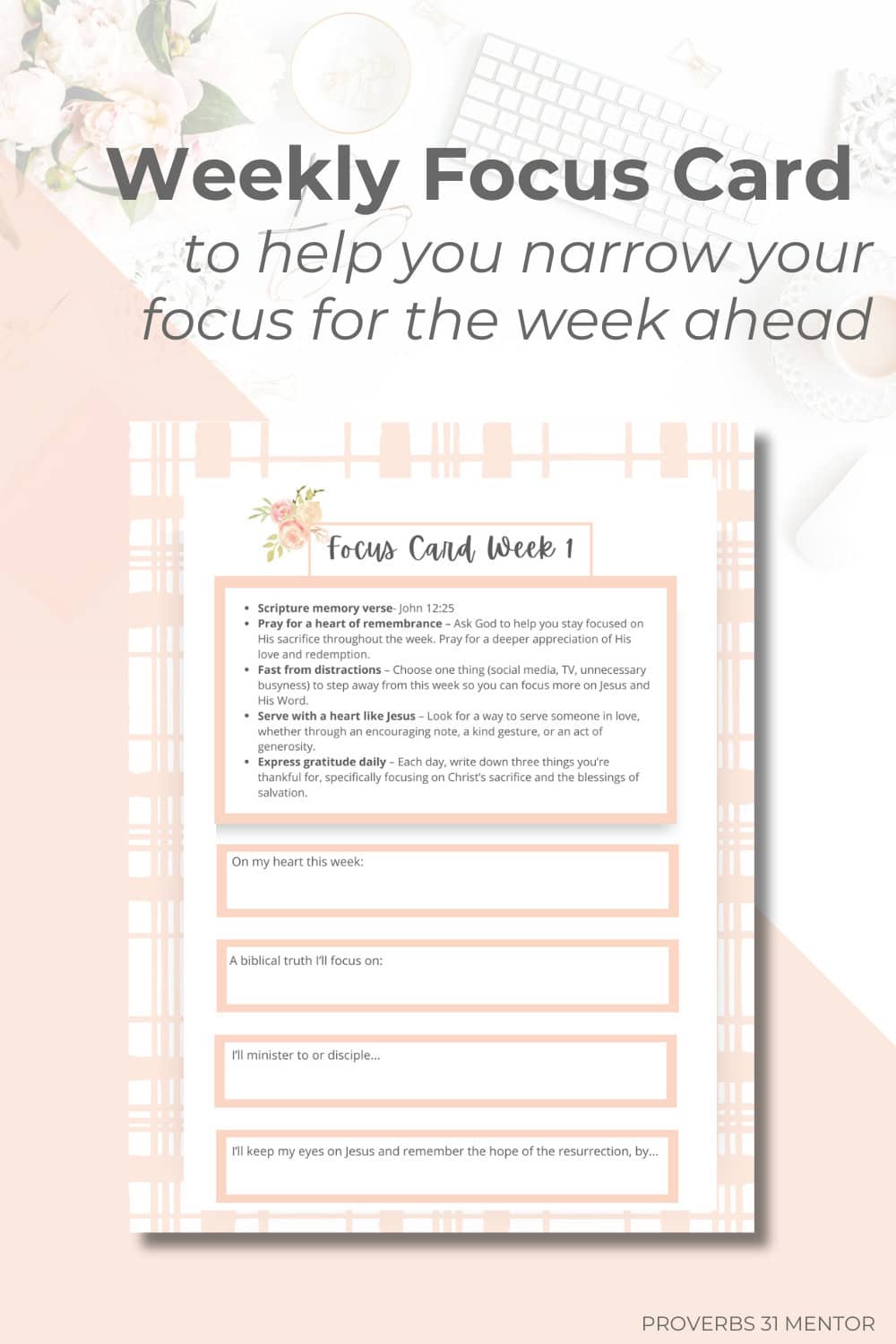 Weekly FOCUS Cards to keep you actively living out scripture and what you’re learning in your study.
