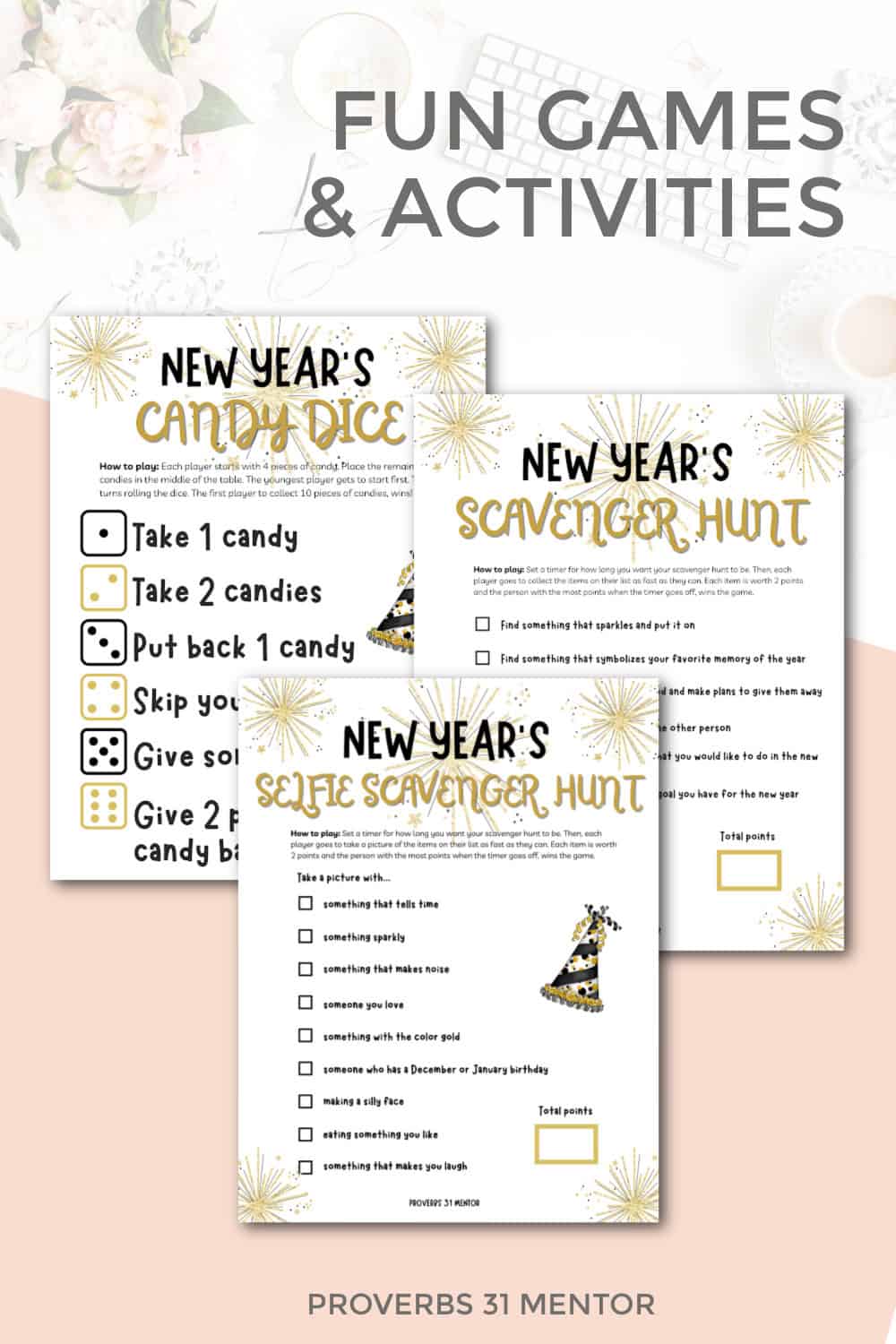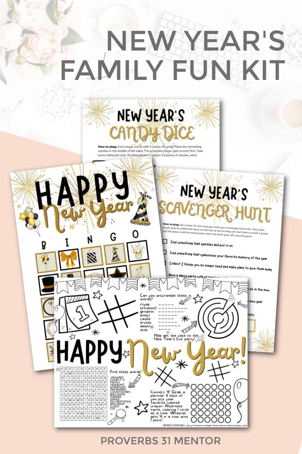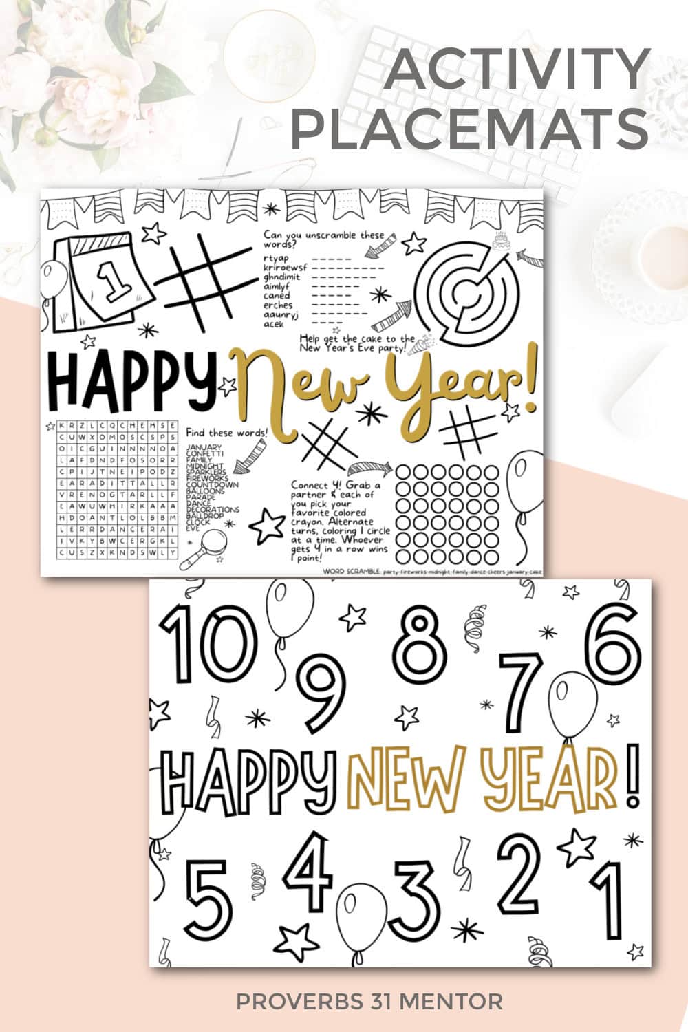 These printable New Year’s Eve activities feature: