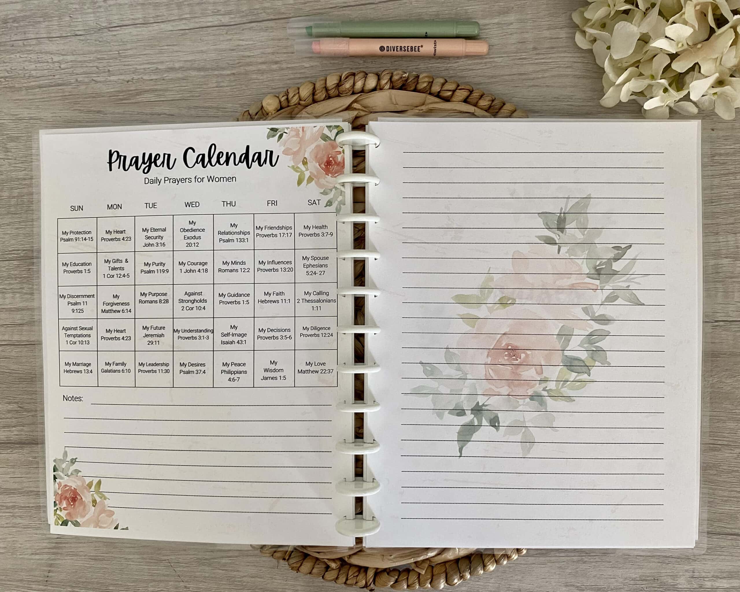 - Daily and weekly prayer layouts